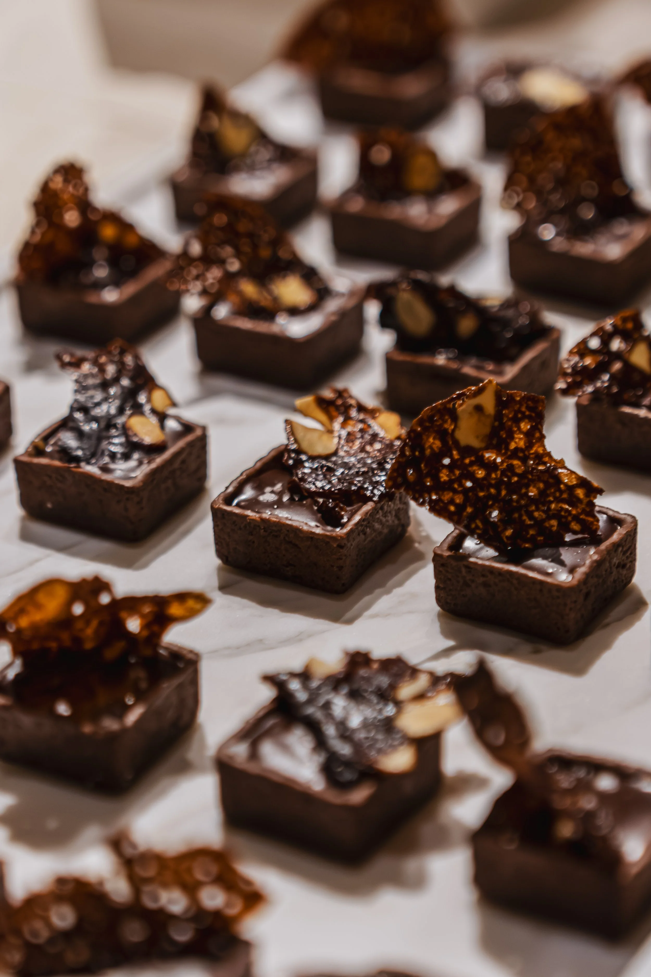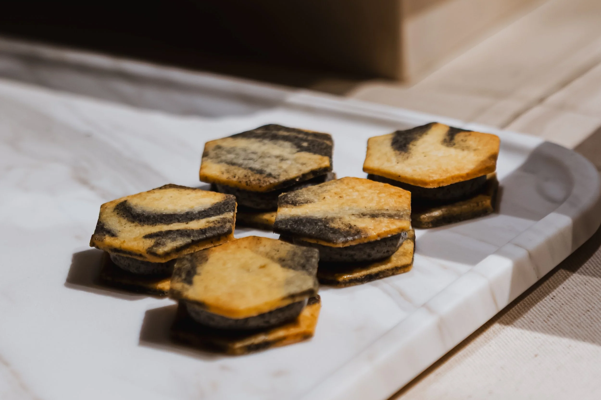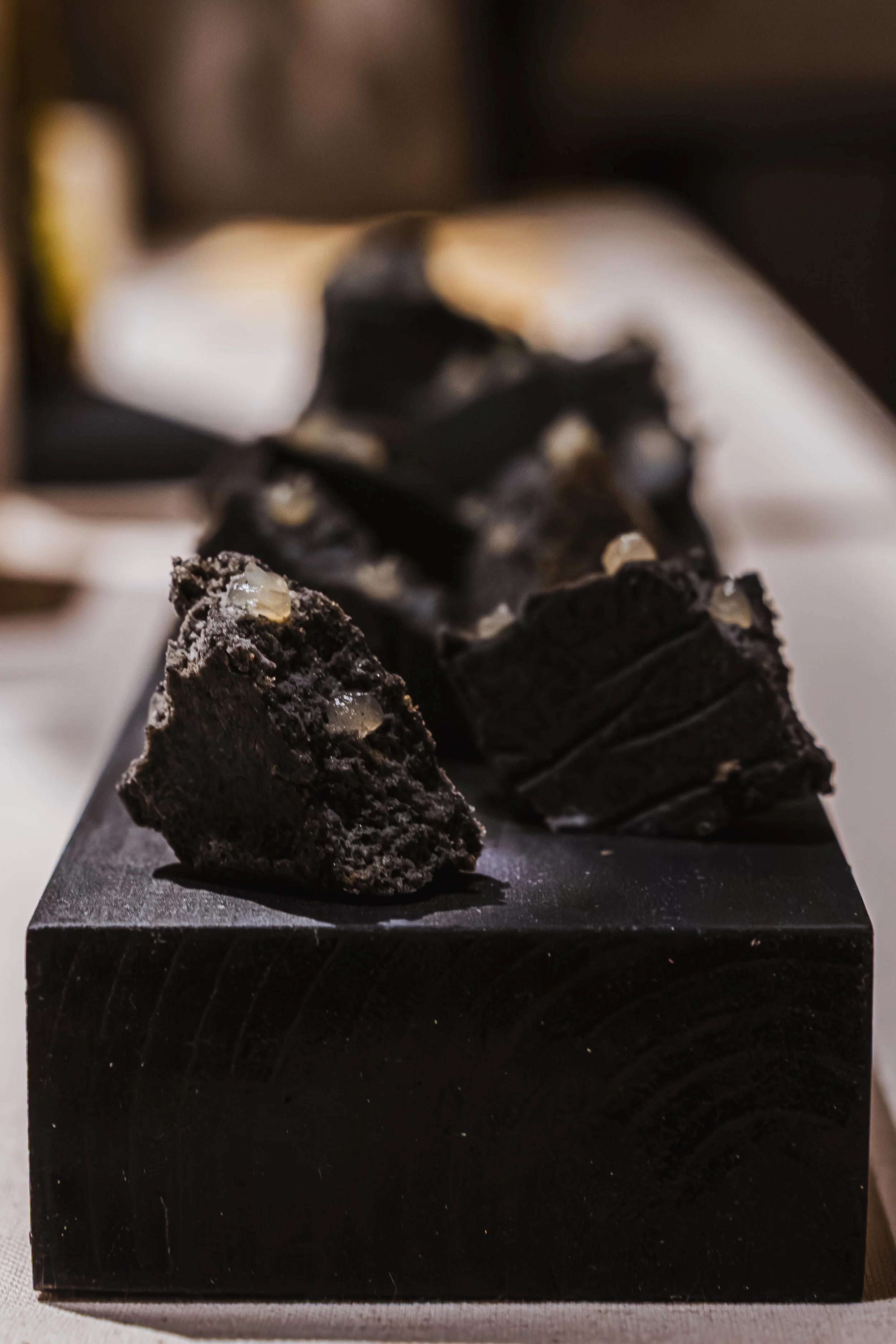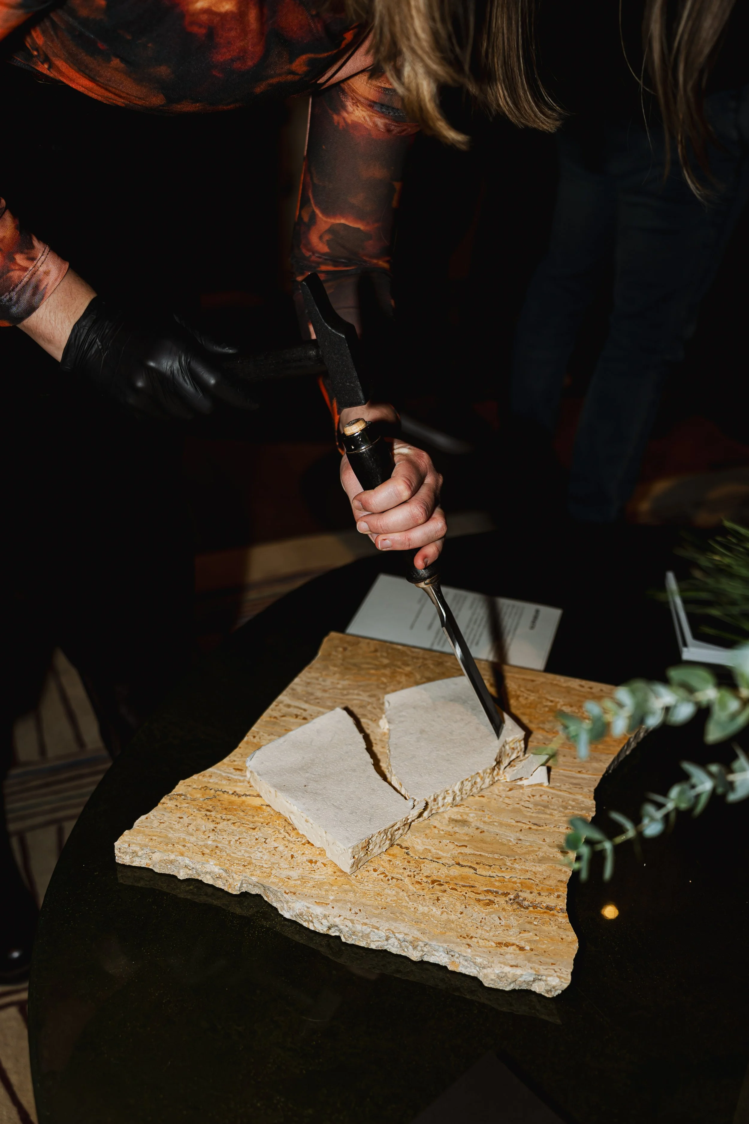 Travail autour de matières minérales comestibles, transposition du processus de fabrication d’un objet en marbre au champ culinaire, et création de pièces cocktail sur-mesure.